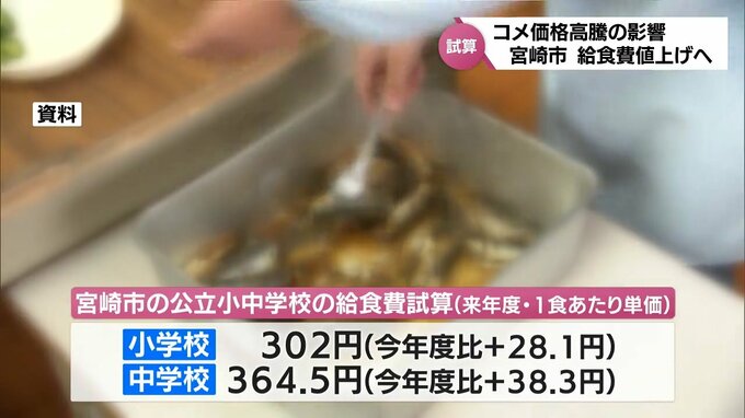 コメの価格高騰の影響が給食費にも及んでいます。宮崎市は公立小中学校の給食費について、来年度になる4月以降、値上げする方針を明らかにしました。宮崎市によりますと、来年度の市内の公立小中学校の給食費を試…