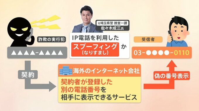 警視庁は、番号偽装の手口が明らかになっておらず、解析を急いでいるということですが、佐々木さんはIP電話を利用したスプーフィング(なりすまし)ではないかとみているといいます。