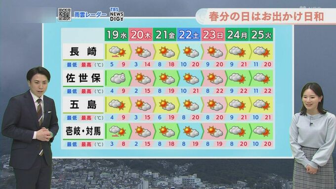 この先は20日木曜日の春分の日を境に、天気の傾向が大きく変わりそうです。21日金曜日以降は一気に気温が上がり最高気温が20℃を超える日もある見込みです。上着はいらず、暑がりの人だと半袖でもいいような気温が予想されています。