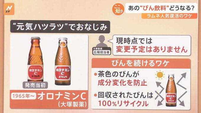 びんでの販売を続けるのか、大塚製薬の広報担当者「現時点では、変更予定はありません」としています。