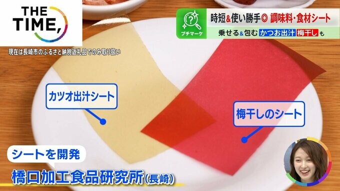 さらに、『橋口加工食品研究所』(長崎市)が開発したのは、「カツオ出汁」と「梅干し」のシート。(※3月現在、長崎市のふるさと納税返礼品でのみ取り扱い)