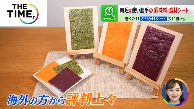 また、ふりかけは「ご飯のお供」という固定観念が強いため、シート状にすることで料理に幅広く使ってもらう狙いもあるといいます。