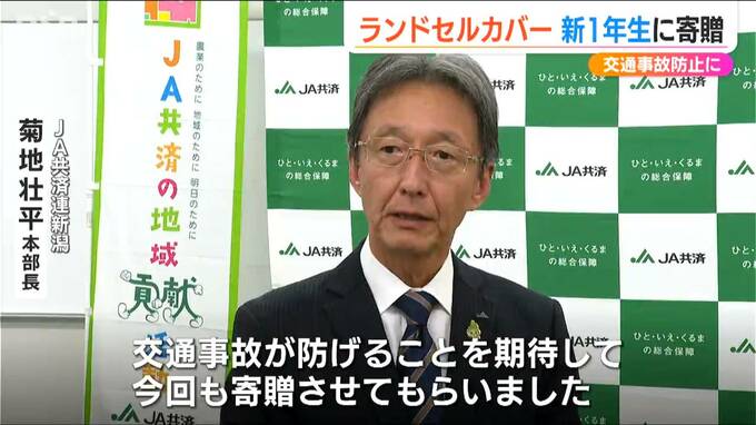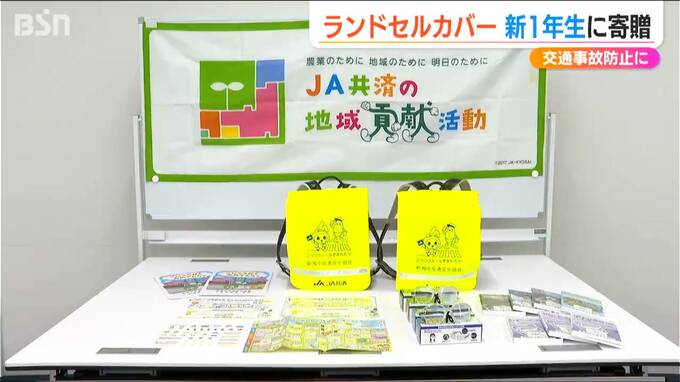 新潟県内の小学校の新1年生が交通事故に遭わないように…そんな思いを込めて、JA共済連新潟がランドセルカバーなどを寄贈しました。