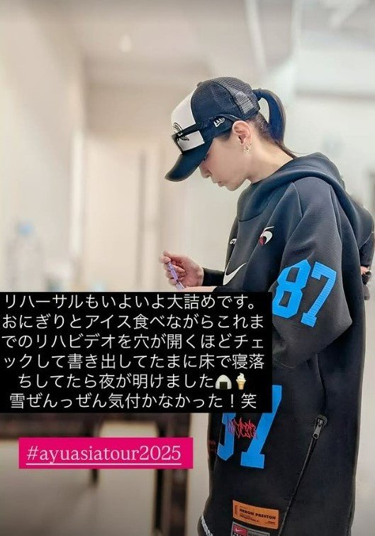 歌手の浜崎あゆみさんが、自身のインスタグラム・ストーリーズに最新ショットを公開し、大詰めを迎えているアジアツアーの準備について綴りました。