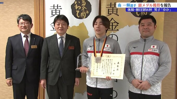 2月、ドイツで行われた体操の種目別ワールドカップ・男子ゆかで銀メダルを獲得した岩手県滝沢市在住の南一輝選手が19日県庁を訪れ、大会の成績を報告しました。県庁を訪れたのは南一輝選手と所属するエムズスポー…