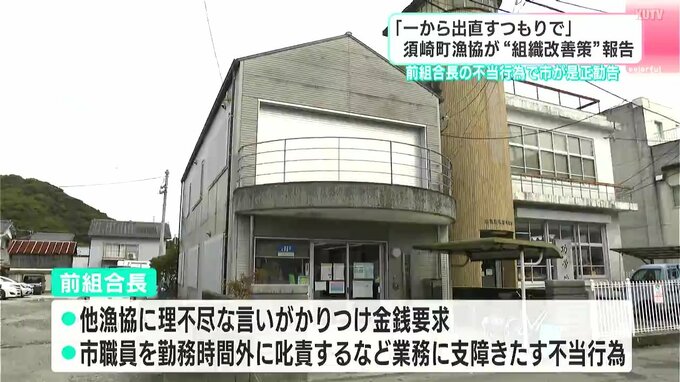 高知県の須崎町漁協の組合長がほかの漁協などに不当な行為を繰り返して業務に支障を与え、須崎市が是正勧告をした問題で、漁協の代表者らが、組織の改善策をまとめ、報告書を市に提出しました。
