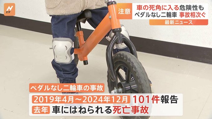 幼い子ども向けのペダルのない二輪車で事故が相次いでいるとして、国民生活センターが実験動画を公開し、注意を呼びかけています。ペダルやブレーキがついていない、幼い子ども向けの二輪車。国民生活センターの実…