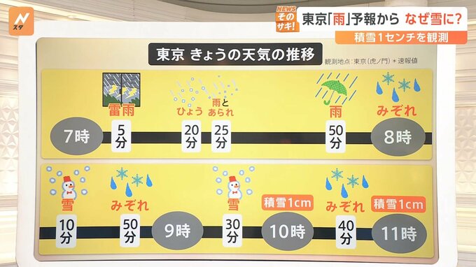 東京「雨」予報からなぜ雪に? 積雪1センチを観測