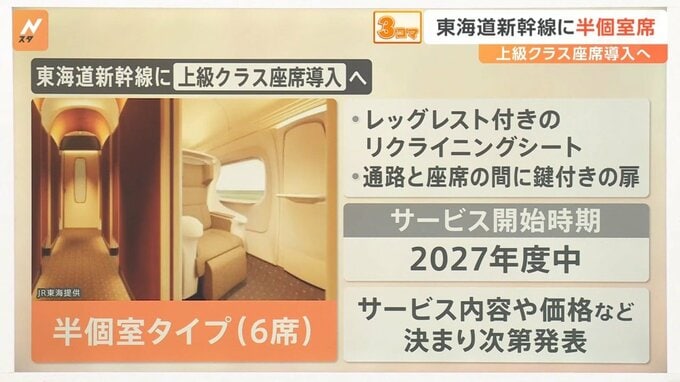 JR東海の東海道新幹線に上級クラスの座席が導入されることが発表されました。