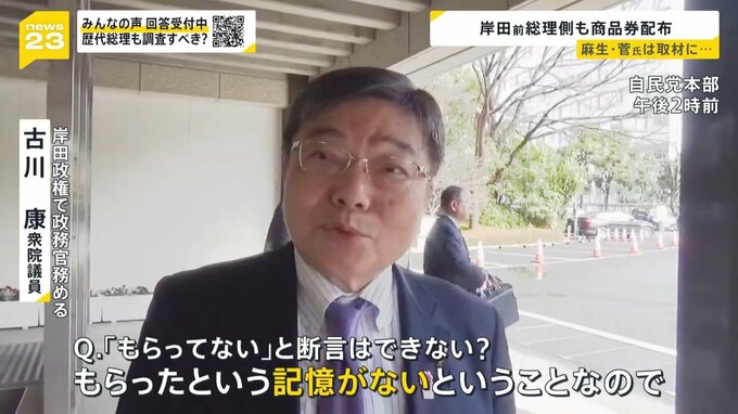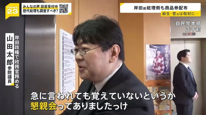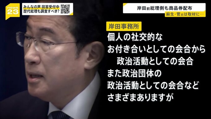 岸田前総理側も商品券配布 歴代総理 麻生・菅氏は否定せず…