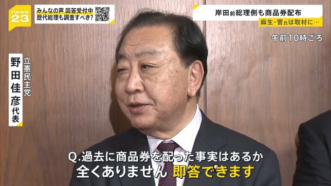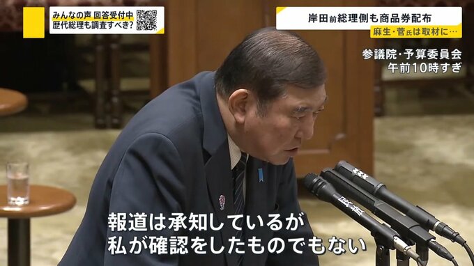 総理経験のある菅氏・麻生氏の事務所にも、総理時代に議員に商品券を渡したことがあるか尋ねると・・・。