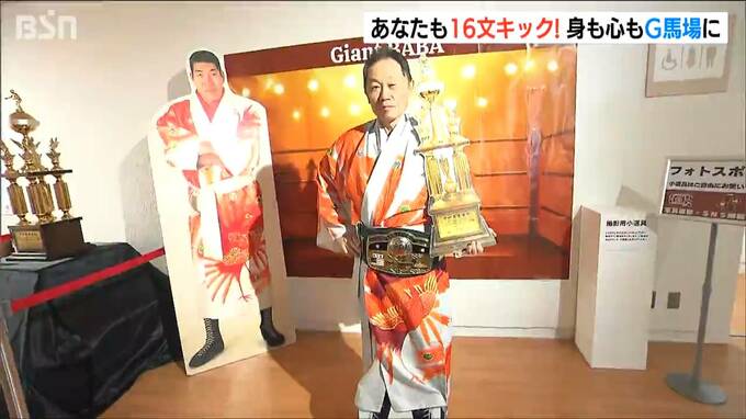 伝説のプロレスラー・ジャイアント馬場さんになりきれるイベントが新潟県三条市で始まりました。ジャイアント馬場さんのレプリカガウンに、チャンピオンベルトも!黒崎貴之キャスター「これだけではありません。馬…