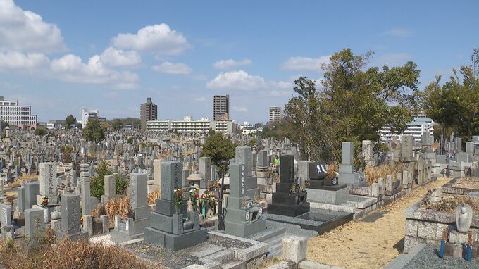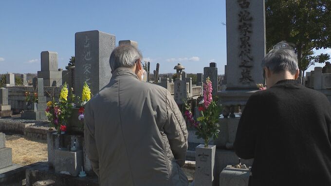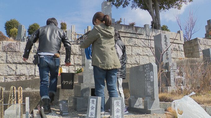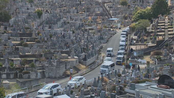 彼岸の中日に大勢の家族連れらが墓参り 墓石を清め線香や花を供えて先祖の霊を慰める 名古屋・天白区の八事霊園