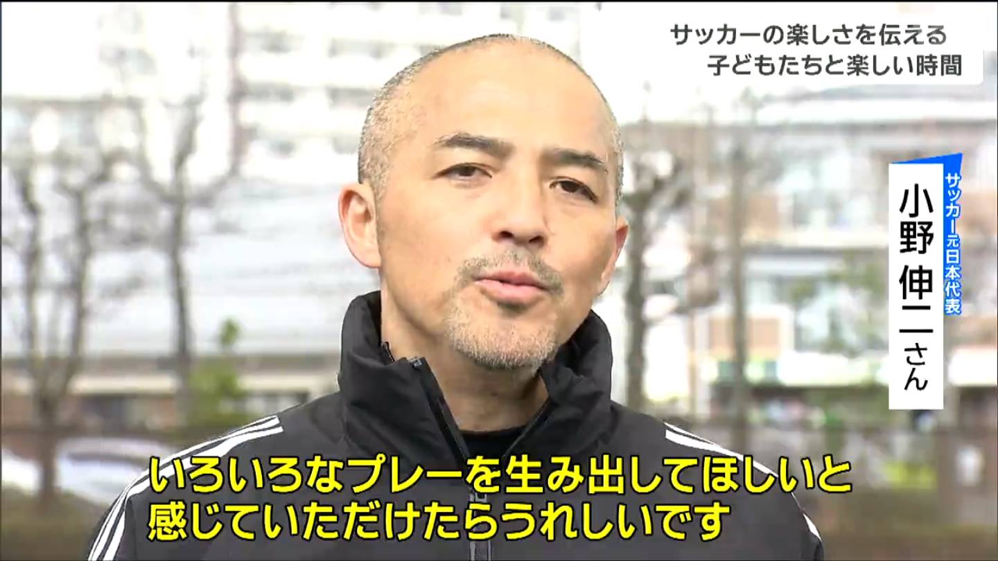 サッカー元日本代表の小野伸二さんが仙台市内でサッカー教室を開き、子どもたちとふれあいました。