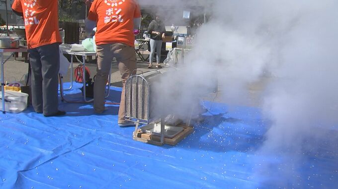 また、昔懐かしいポン菓子の実演も行われ、出来上がるたびに子どもたちに無料で配布されました。