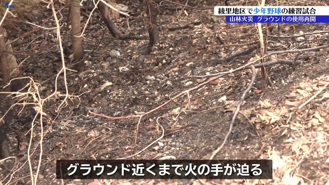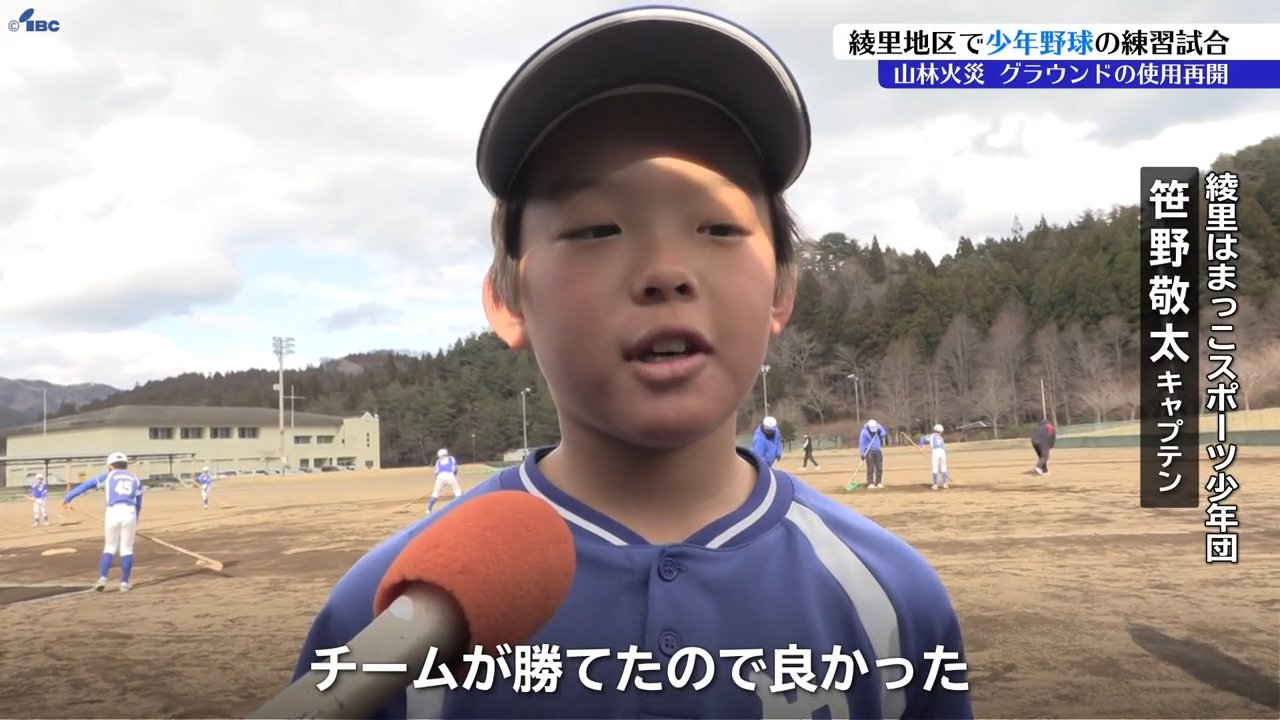 大規模な山林火災に見舞われた岩手県大船渡市三陸町の綾里(りょうり)地区で20日、少年野球の練習試合が行われ、久しぶりに子どもたちの元気な声がグラウンドに響きました。