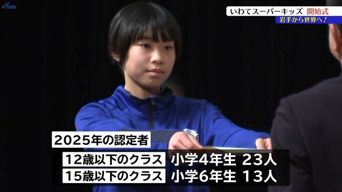 岩手から世界で活躍するトップアスリートの発掘・育成を目的にした「いわてスーパーキッズ」に選ばれたのは、12歳以下の小学4年生23人と15歳以下の小学6年生13人です。