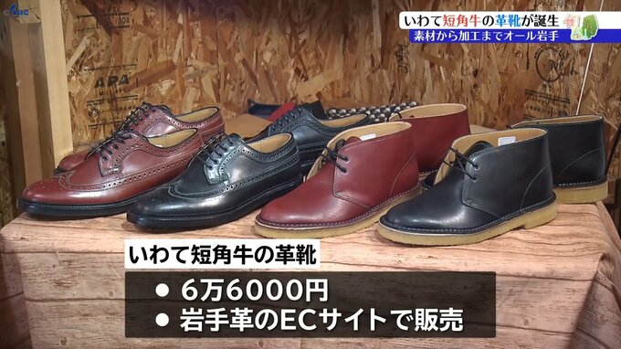 いわて短角牛の革靴は、いずれも6万6000円(税込み)で岩手革のオンラインショップで販売しています。