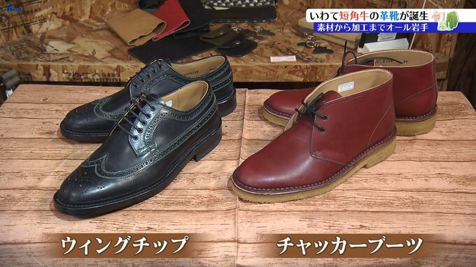 革靴の種類はウイングチップとチャッカーブーツのいずれも黒と茶の2色。県内のリーガル工場で作られているまさにオール岩手の製品です。発売から予想を上回る反響があったということです。