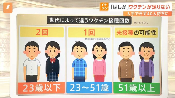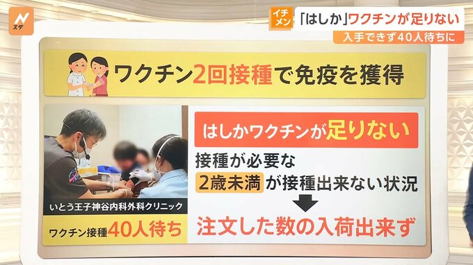 いとう王子神谷内科外科クリニックでは、40人がワクチンの接種を待っているそうです。接種が必要な2歳未満が接種できない状況が続いており、注文した数の入荷もできていないということです。