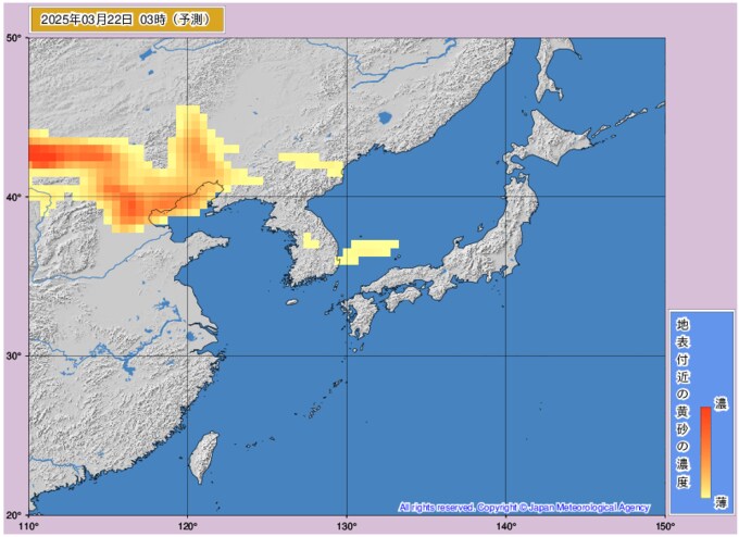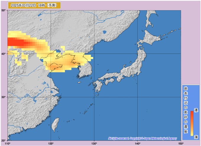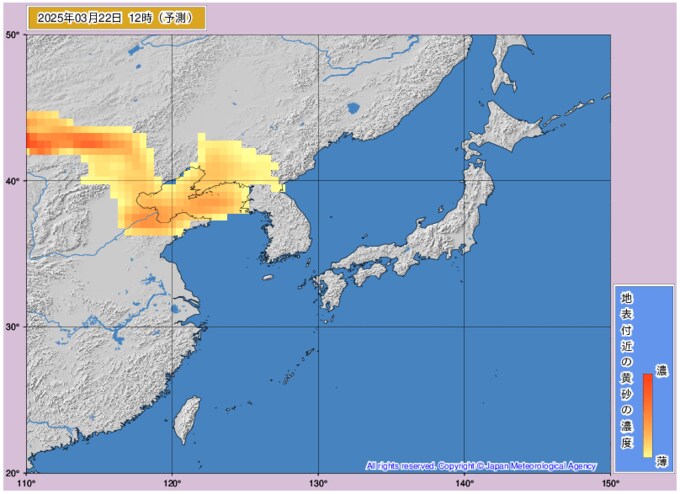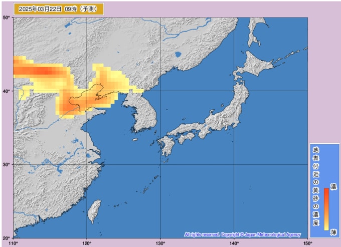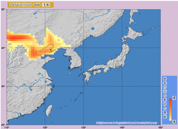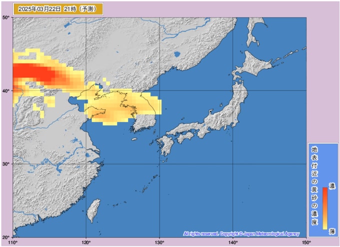 黄砂情報 22日以降に黄砂が飛来の予想 いつどのくらい黄砂が来るか?黄砂濃度を時間ごとの画像で掲載 気象庁 テレビユー山形 2025年3月21日(金) 09:56 国内 ■22日も大きな影響は見られない予想 ○22日0時 ○22日3時 ○22日6時 ○22日9時 ○22日12時 ○22日15時 ○22日18時 ○22日21時