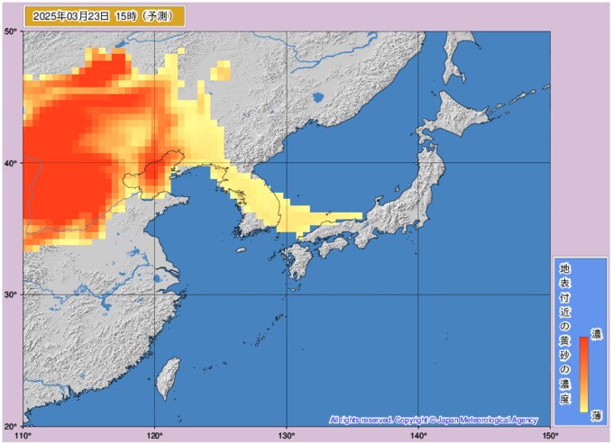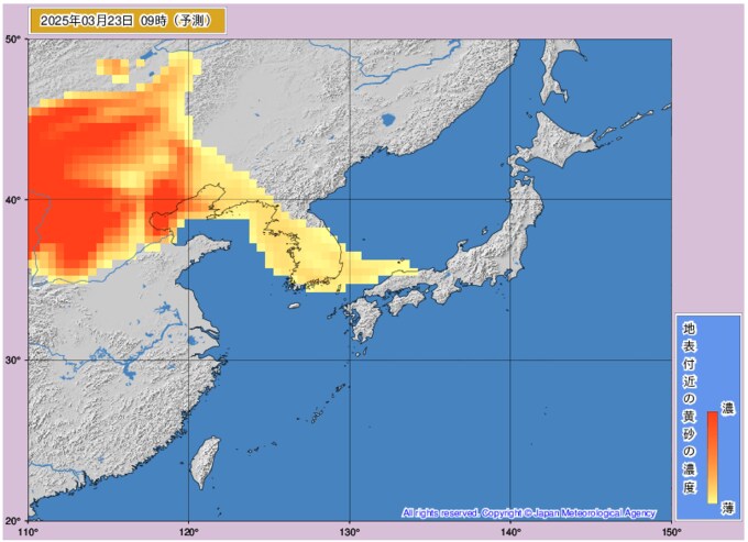 黄砂情報 22日以降に黄砂が飛来の予想 いつどのくらい黄砂が来るか?黄砂濃度を時間ごとの画像で掲載 気象庁 テレビユー山形 2025年3月21日(金) 09:56 国内 ■23日は西日本に影響か ○23日3時 ○23日9時 ○23日15時 ○23日21時