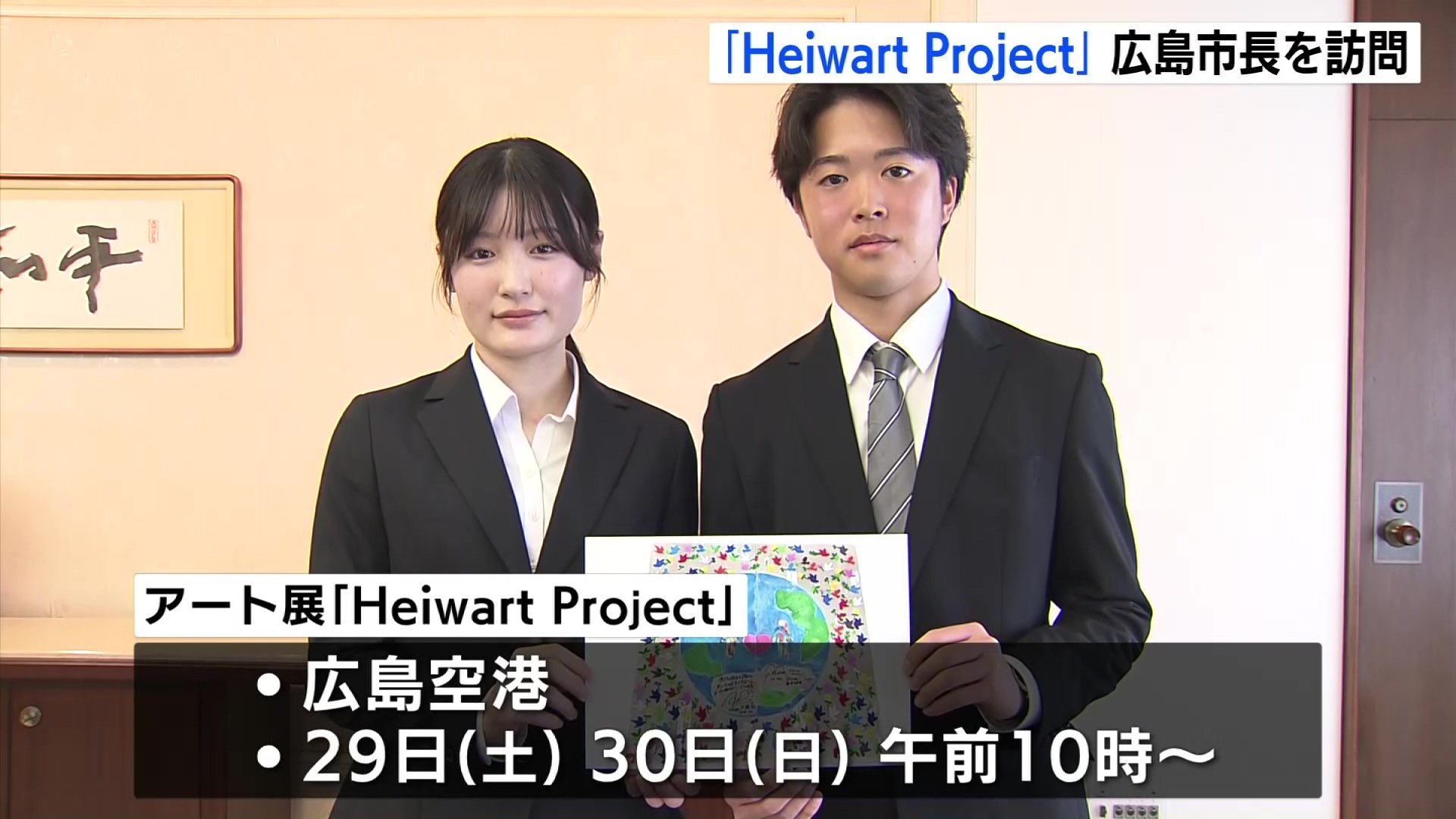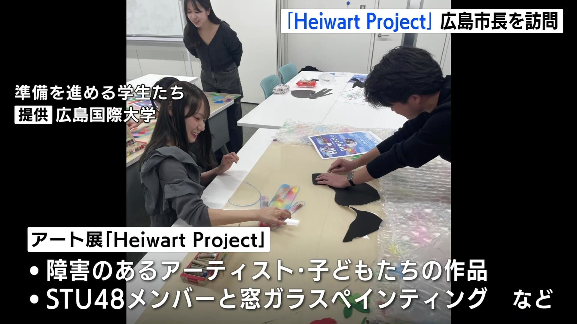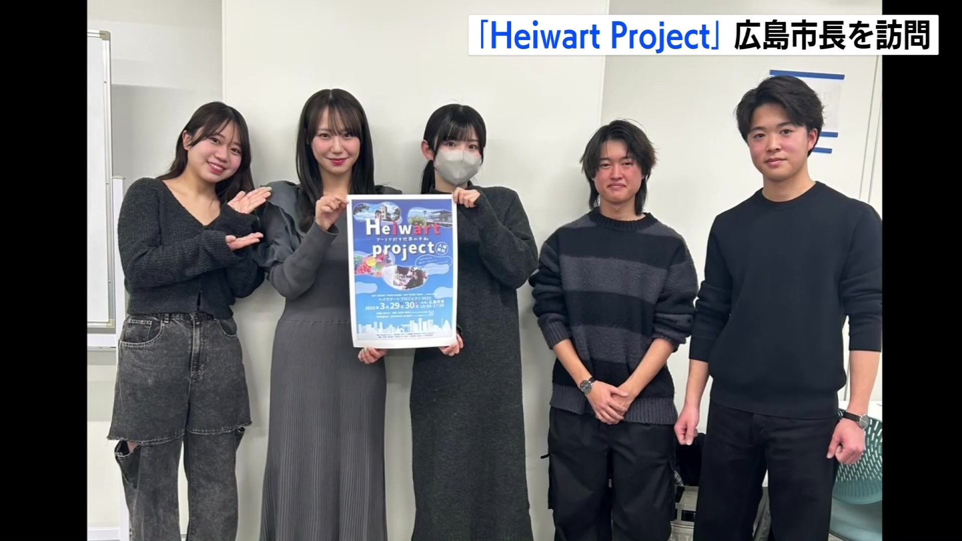松井市長を訪問したのは広島国際大学・東広島キャンパスの学生や、障害者の支援団体などでつくる「Heiwart Project」の実行委員会です。