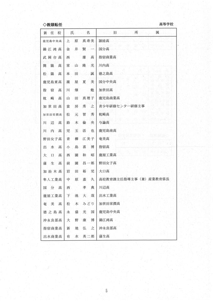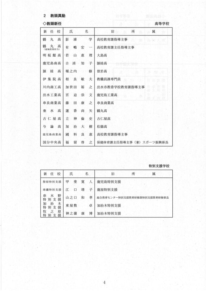 鹿児島県教職員 人事異動2025【高校、中高一貫教育校、夜間中学、特別支援学校】異動一覧「あの先生はどこへ」