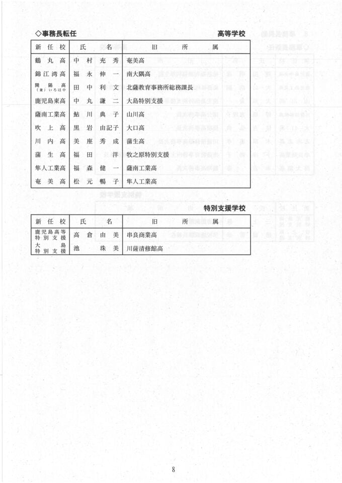 鹿児島県教職員 人事異動2025【高校、中高一貫教育校、夜間中学、特別支援学校】異動一覧「あの先生はどこへ」