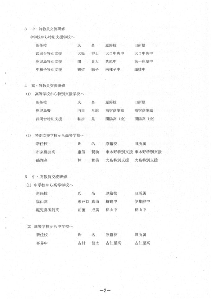 (鹿児島県教育委員会から不掲載の依頼があった教職員等のお名前は掲載していません)