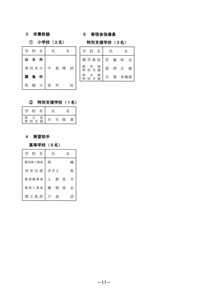 鹿児島県教職員 人事異動2025【新規採用者一覧】「新しい先生、職員さんようこそ」 南日本放送 2025年3月21日(金) 15:06 国内 【養護教諭 小学校、中学校、高校】 【栄養教諭、実習助手、寄宿舎指導員】 【事務職員(小学校、中学校)】 【事務職員(高校、県立中高一貫教育校)、船舶職員】