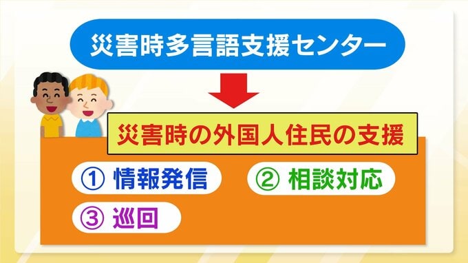 『災害時多言語支援センター』の役割は、スタッフが避難所に避難した外国人を訪ね、困りごとを聞き取って解決できるようにサポートすることです。