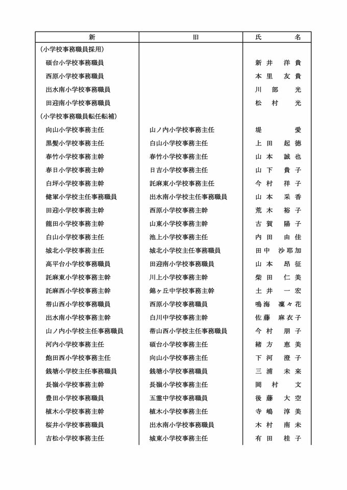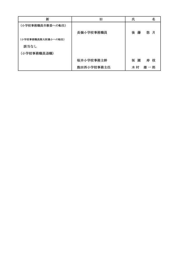 【小学校事務職員市教委への転任】【小学校事務職員退職】