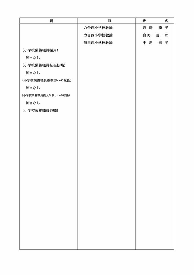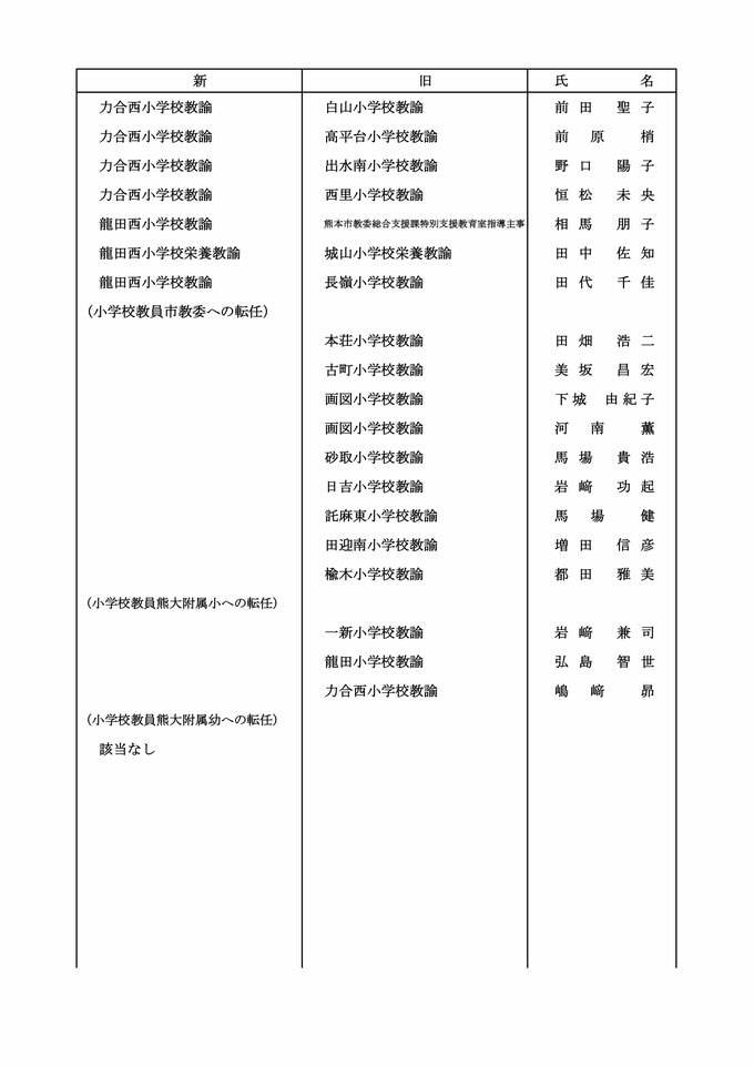 【小学校教員転任転補(続き)】【小学校教員市教委への転任】【小学校教員熊大附属小への転任】
