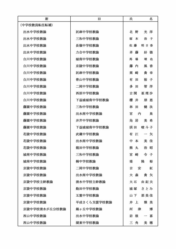 【中学校教員転任転補】