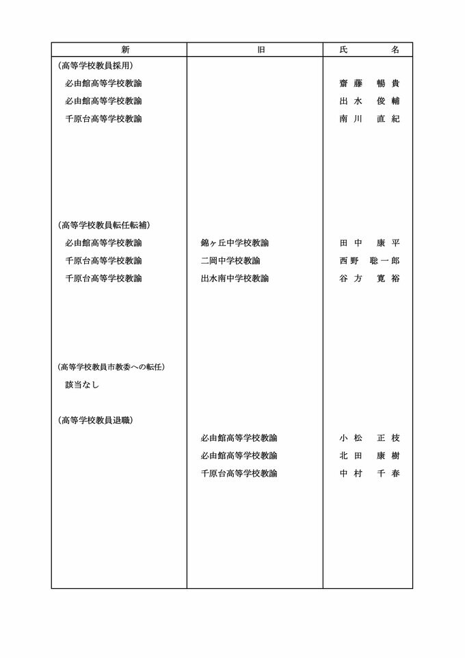 <熊本市立高校・専門学校・幼稚園・特別支援学校の人事異動>