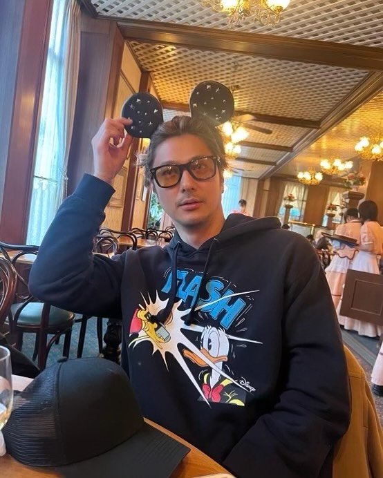 もこみちさんは、カフェでくつろぎつつ、黒のキャップをテーブルに置いて、代わりにカチューシャを付けたところのワンショットを投稿。マウスの耳のカチューシャは、長身で男らしいもこみちさんとのギャップが絶妙の映え具合。「・・・・・お初」と一言だけテキストしていて、初めてのディズニーに若干戸惑いもある模様です。