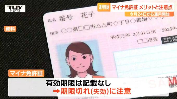 県警察本部交通部運転免許課 五十嵐好恵 課長補佐「マイナンバーカードの券面上に免許データは表示されません。そのため、免許証の有効期限を確認するためには、マイナ免許証読み取りアプリか、マイナポータルの方にログインしていただいて、確認していただく必要がある。そちらには、スマートフォンやパソコンなどが必要になりますので、ご注意ください」