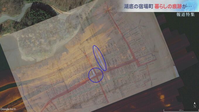 水没の20年前に作られた地図を重ねてみると街道と参道の交わる付近、そして道だった場所と合致した。このことから、この古い地図が桧原宿の様子をある程度正確に記していたことがわかった。地図上で最も大きな建物がある付近などでも音響装置の反応が出ていて、今後の調査でさらに建物の遺構などを発見できる可能性が高まった。