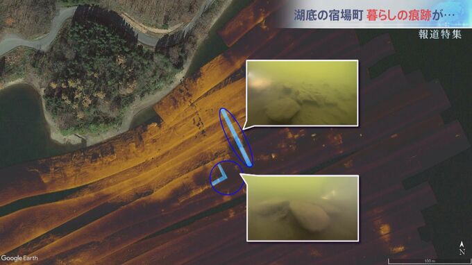 木村たちが見ていたのは、音響装置を使って湖底の状況を表したもの。木村たちは潜水調査で、L字の石垣、そして盛り上がった道のようなものを確認していた。