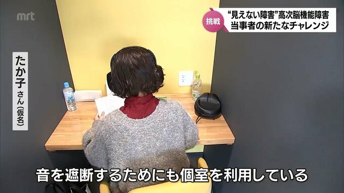 「注意障害によって、わずかな音などの刺激で気が散りやすくて集中が困難になってしまうので、音を遮断するためにも、個室を利用しています」