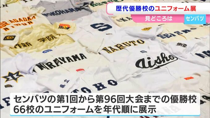 あす(22日)から始まる「最強の高校野球ユニフォーム展春」。会場には1回から96回大会までのセンバツ優勝校、66校のユニホームが年代順に展示されます。ユニフォームのほとんどは石原正裕さんが高校野球の歴史研究のため、OBや監督から譲り受けたものです。入手が困難だったユニフォームも少なくないといいます。