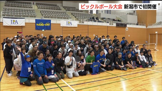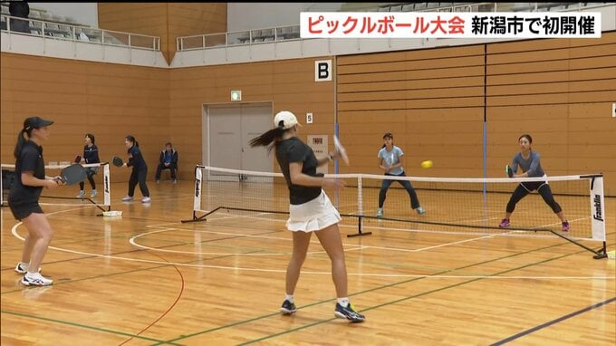 アメリカ発祥のラケットスポーツ・ピックルボールの大会が、新潟市東区の新潟市東総合スポーツセンターで開かれ、全国各地から参加者が集まりました。