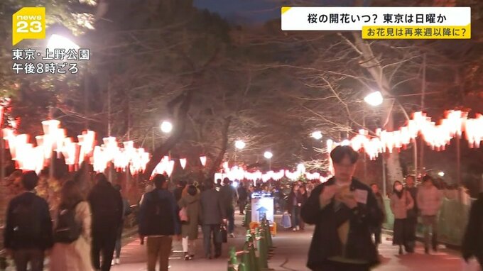「午後8時過ぎの東京・上野です。たくさんの方が桜を楽しんでいます」