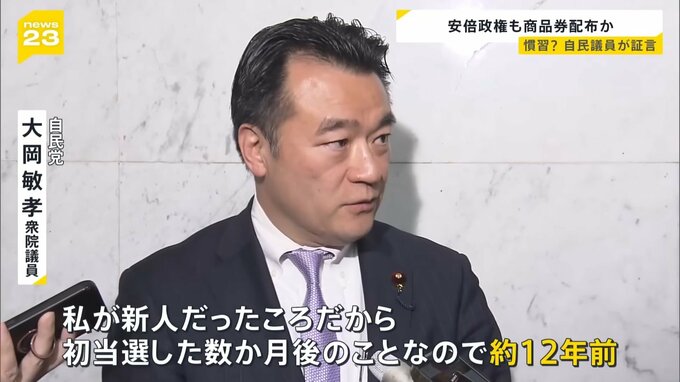 商品券配布は自民党の慣習だったのか。自民党議員が新たに証言しました。