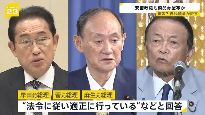 商品券の配布は自民党の慣習だったのでしょうか。“商品券的なものを受け取った”…自民党議員が新たに証言しました。総理経験者は“法令に従い適正に行っている”などと回答しました。