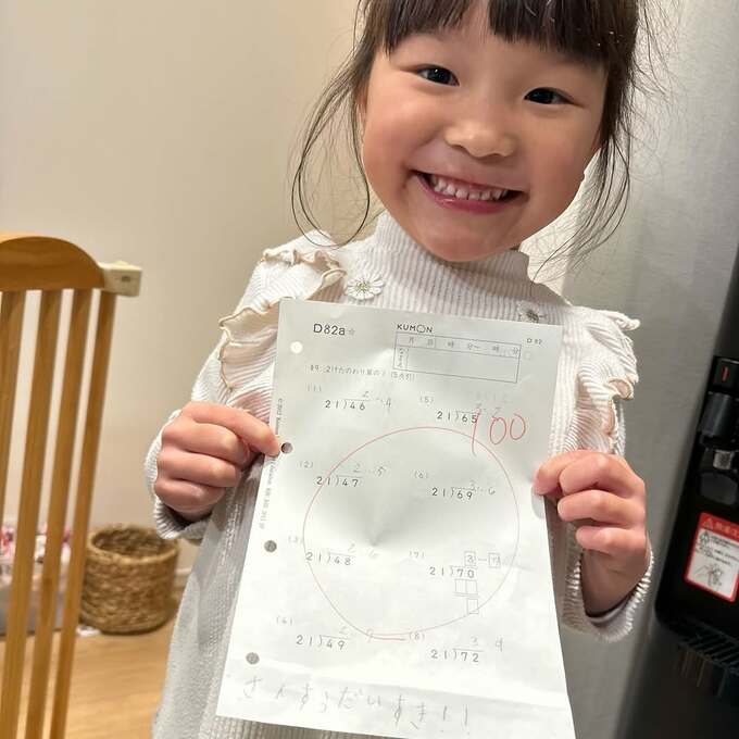 「ののちゃん」こと、タレントの村方乃々佳さんのインスタグラム・アカウントが、算数の課題で「100点」を取ったことを明かしました。