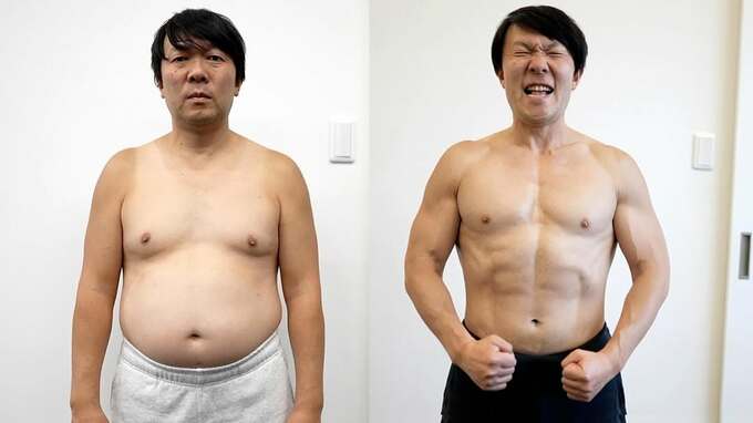 投稿された画像では、トレーニング前と、現在のオラキオさんの「BEFORE・AFTER」の姿が見て取れます。