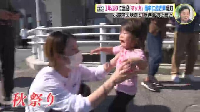 3年ぶりに子どもたちの歓声が…、いや、元気な泣き声が街中に響き渡りました。広島・坂町で行われた秋祭り…。コロナ禍でおとなしかった「主役」も駆け回りました。