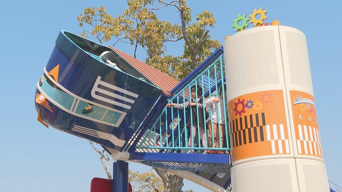 市の特産品「笠戸ひらめ」や、「ものづくりのまち下松」をイメージした遊具も設置されています。